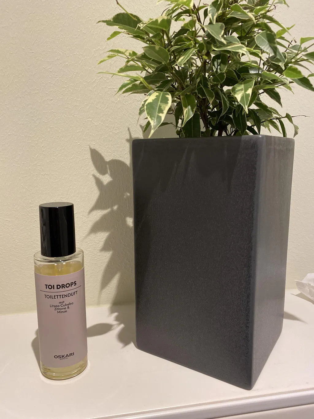 Gib 3–5 Spritzer direkt ins Toilettenwasser – bevor du die Toilette benutzt. Toi Drops bildet nun einen duftenden Schutzfilm auf der Wasseroberfläche.